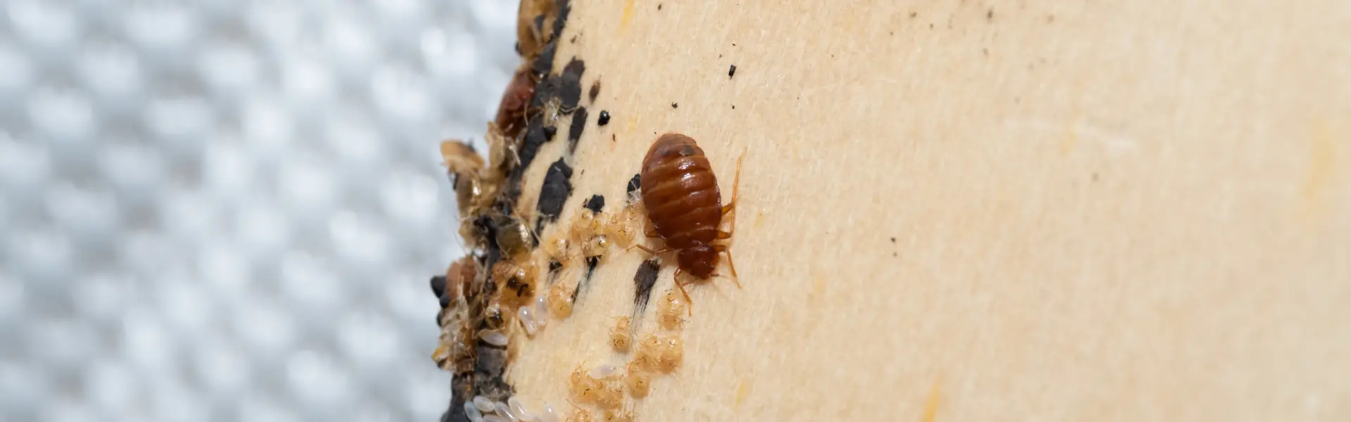 The Basics: Bed bugs are a flat insect about the size of an apple seed that feed on us, and more specifically, our blood. They’re usually a reddish-brown color and have been described as having a sweet, musty odor. While they are known for hiding in your sheets and blankets, they can be found almost anywhere in your house. Their small size lets them set up shop even in electrical outlets.